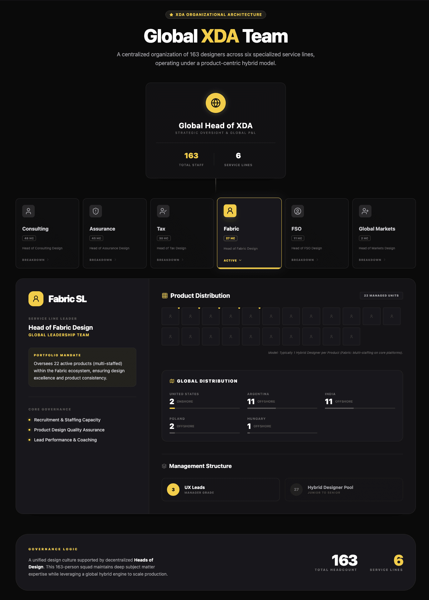 As EY’s digital investment accelerated, our leadership identified a pivotal opportunity to harmonize the firm’s Client Technology Global footprint. At the time, design efforts were decentralized, leading to fragmented user experiences across a massive portfolio of more than 100+ global products. The mission was to evolve this landscape into a mature, unified XD organization. We aimed to move beyond siloed delivery to create a "Single Source of Truth" that would empower every product team within the global footprint to build with consistency, accessibility, and speed.